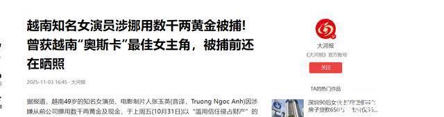 而除了这件事,更让人震惊的是跨国负面大瓜——越南影后张玉英被捕的事情。 10月31日,一则消息曝光,张玉英因涉嫌“滥用信任侵占财产”这一违法行径,被警方依法逮捕。 曾经的“奥斯卡”最佳女主角、“亚洲女明星奖”一线女星,如今却落得如此境遇。
