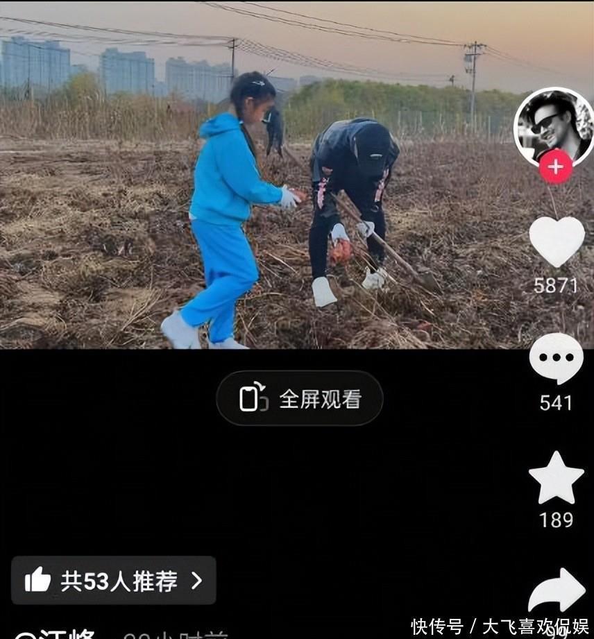 视频里,汪峰和女儿一块儿开心地挖红薯,场面挺温馨的。
