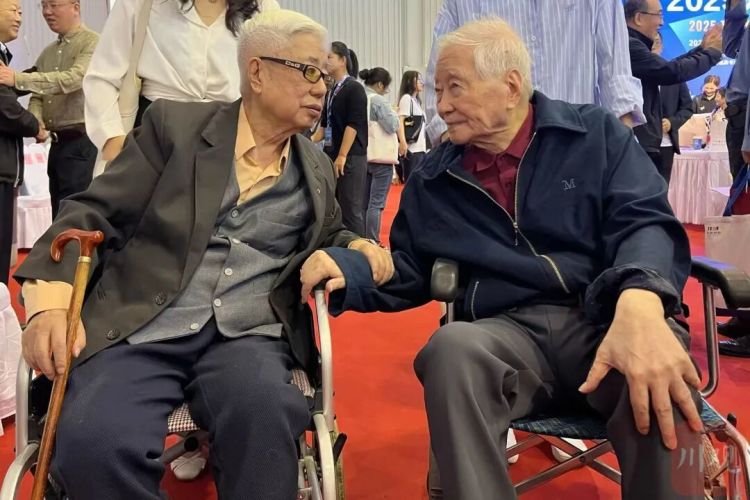 发布会当天,103岁的王老在家人陪伴下坐着轮椅亲临书展现场。活动现场,王火与96岁老友李致重逢——两辆轮椅缓缓靠近,布满岁月纹路的双手紧紧相握,两人凑在耳边低声絮语,眼角均泛起泪光,这份42年的深厚情谊让全场动容。