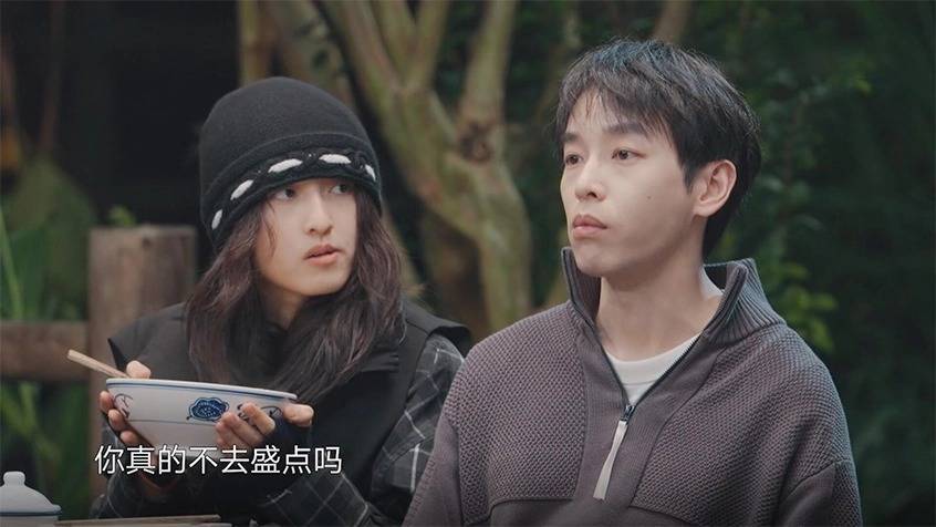谭松韵来的那期路透照片之中,张子枫低着头在吃小笼包,谭松韵在旁边一直在说着,画面确实是挺治愈的,那正片里面,张子枫拿着剧本愁容满面的,谭松韵带来的轻松感觉一下子就被戏剧任务给破坏掉了。
