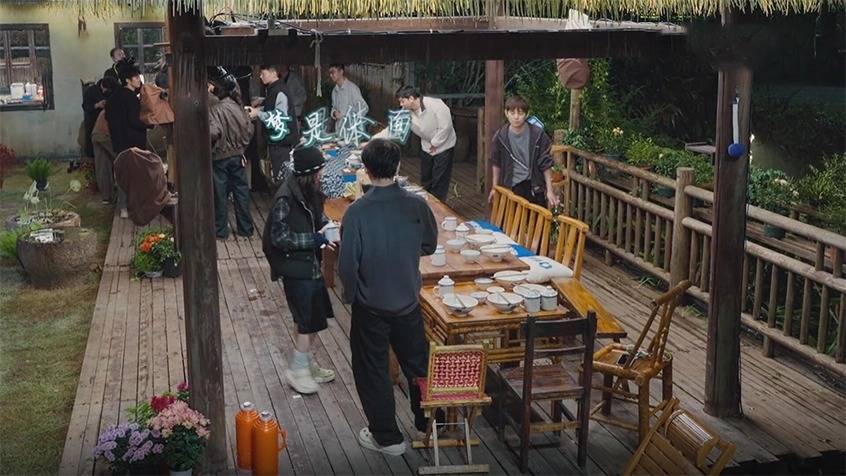 还记得第一季的时候,黄磊在厨房慢悠悠地炖着红烧肉,何炅在旁边剥着蒜聊天,刘宪华拉着彭昱畅到地里干活,那慢悠悠的烟火气,真能让人感觉特别治愈,现在可不一样了,黄磊升级成艺术总监了,听说厨房都交给专业团队了,他忙着在剧场开会排练,何炅跟着去对接戏剧工作,蘑菇屋就变成戏剧工作坊了。